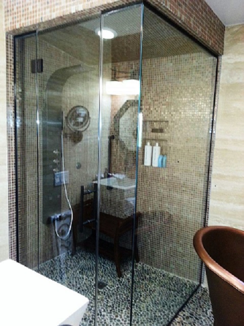 Custom Heavy Glass Shower Enclosure - Using Wall to Wall Hinge configuration the possibilities are infinite when designing custom shower spaces.For more information click this link.